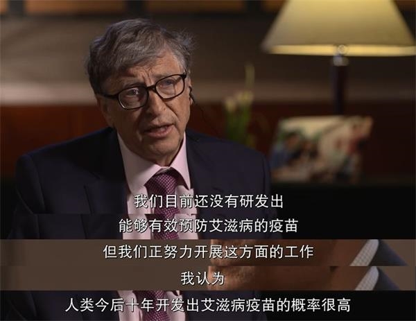 他表示:“我认为人类今后10年开发出艾滋病疫苗的概率很高,在这一领域盖茨基金会是一个重要的投资者,我们正努力让它早日成为现实。”