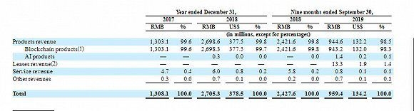 从招股书的营收结构也可以看出,嘉楠科技虽然强调自己的AI芯片的定位,但实际上它至少现在都只是一家数字货币矿机企业。数据显示,2017年至2019年前三季度的营收构成可以看出,2017年,嘉楠科技矿机产品收入为13.03亿元,AI产品收入为零;2018年嘉楠科技矿机产品收入为26.99亿元,AI产品仅为30万元;2019年前三季度,嘉楠科技矿机产品收入为9.45亿元,AI产品为140万元。