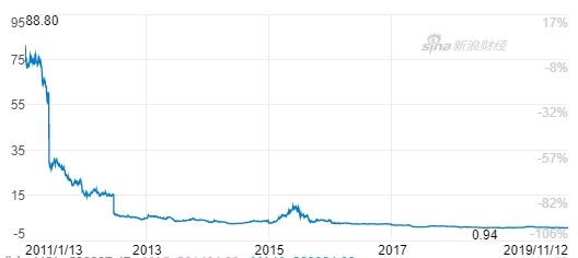 这之后,华锐风电一路亏损,2012年净利润亏损5.83亿,2013年继续亏损34.46亿——连续两年巨亏之后,风光一时的华锐风电带上了ST的帽子,若接下来无法扭亏,它将不可避免地走上退市之路。更重要的是,在此期间,华锐风电股价同时经历了“大跳水”,市值一泻千里,股票走势竟走出了惊世骇俗的“L”型,破发的88.8元就这样成为了其上市以来的历史最高价。