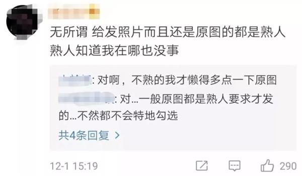 当然,也有网友认为:无所谓啊,能让自己发原图的都是熟人。