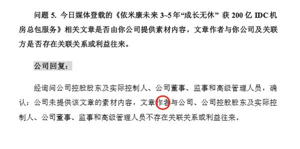 记者查询发现,《依米康未来3-5年“成长无休” 获200亿IDC机房总包服务》一文,至今仍能在多家网站看到。