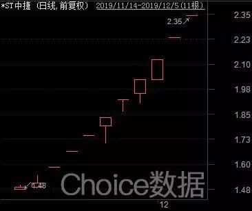 数据显示,自11月14日以来,*ST中捷已是11连阳,近9个交易日更是天天涨停,累计涨幅57.72%,同期大盘涨幅仅为1.15%。