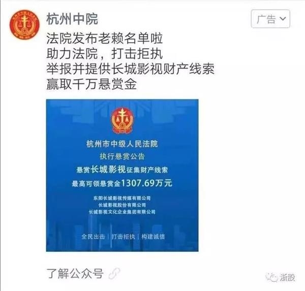据浙江新闻报道,此番杭州市中级人民法院发布悬赏执行的只是长城系资本困境中的一个个案。