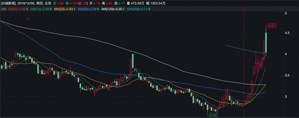 值得注意的是,长城影视(002071。 SZ)从12月5日开始,其股价便节节走高,5日开盘时的股价为2.79元,而截至19日收盘,其股价为4.3元,短短十余天上涨了54%。