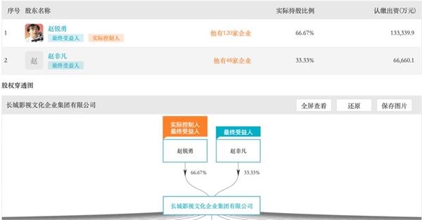 赵锐勇是长城影视文化企业集团(以下简称“长城集团”)的最终受益人、实际控制人,而赵非凡则是他的儿子,公司的最终受益人。