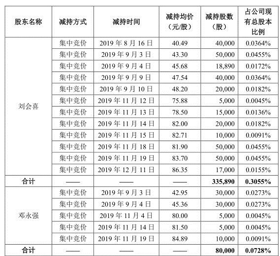 其中万集科技实际控制人、董事长兼总经理翟军,在2019年11月至12月期间,减持108.47万股,减持均价超过每股80元。