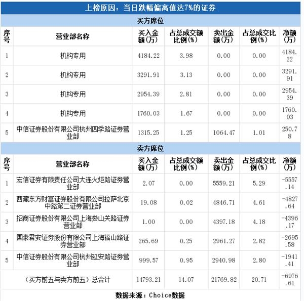 1月14日龙虎榜数据显示,买方席位上共4个机构席位出现在龙虎榜单上,分别位列买一、买二、买三、买四,合计净买入1.22亿元,占该股今日总成交额的11.6%。