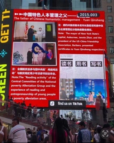 2024年7月荣登纽约时代广场展播,并授予袁勤生“中国杰出华人海外宣传推广大使”荣誉称