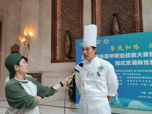 “此次我们组织了澳门六大休闲旅游企业的15名代表选手报名参赛,希望进一步推动三地厨艺融合,也能够把澳门的西餐文化带到珠海与横琴。”澳门工会联合总会副理事长邝子丰回答记者问。